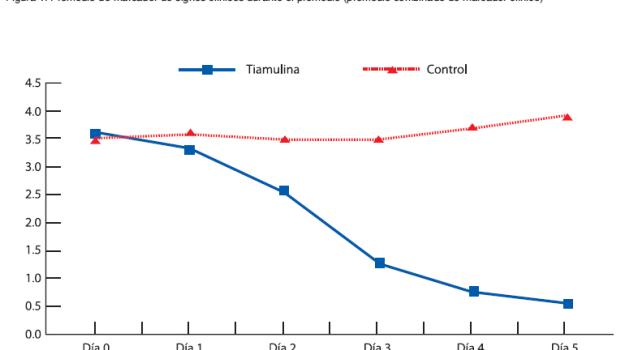 Los resultados demuestran el efecto terapéutico de la medicación con TIAMULINA PS 45% en el agua contra la ileítis. La considerable mejoría de los diferentes parámetros clínicos evaluados, resultaron en un mejor desempeño en los parámetros de producción de los cerdos medicados con TIAMULINA PS 45%.