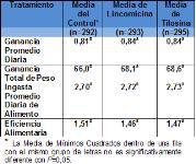 La Tabla 1 muestra que Lincomicina tuvo un rendimiento igual al de Tilosina. Los valores obtenidos con ambos medicamentos fueron mejores desde el punto de vista estadístico que en los animales control que no recibieron medicamento, en relación a la: