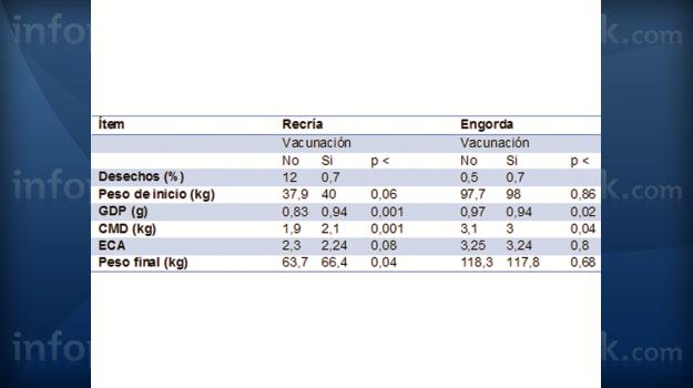 Tabla 2. Impacto productivo de la vacunación en cerdos (Shelton et al., 2012)