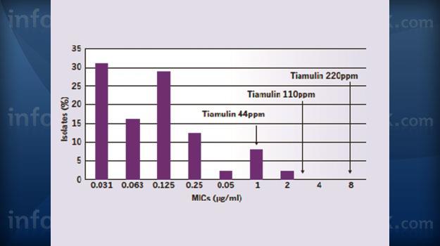 La tiamulina es particularmente activa contra L. intracellularis in vitro (Wattanaphansak et al., 2009) y también es eficaz in vivo (véase la Figura 7) como se valnemulina otro pleuromutilina antibiótico.