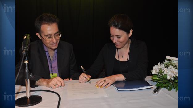 El evento se firmó en el Congreso Gitep 2013, en donde el Sr. Enric Mateu, INvestigador de CReSA firmço por esa entidad y la Lic. Carina Ambrogi por infopork.