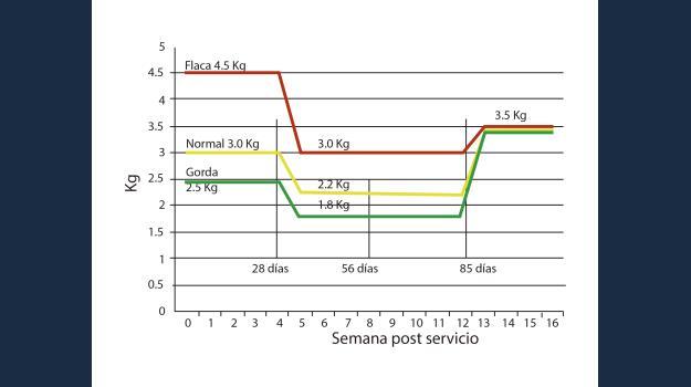 Durante la gestación los altos niveles de energía pueden tener efectos sobre el desarrollo mamario y la producción de leche posterior. Cerdas primerizas muy gordas, con espesor de grasa dorsal por encima de 35 mm, reducen el tamaño mamario y la producción de leche en comparación con primerizas mas magras (25 mm de grasa dorsal).