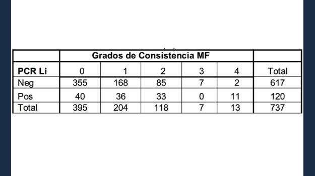 Tabla Nº1: Relación entre la consistencia de la materia fecal (MF) y la detección deLawsonia intracellularis (LI)