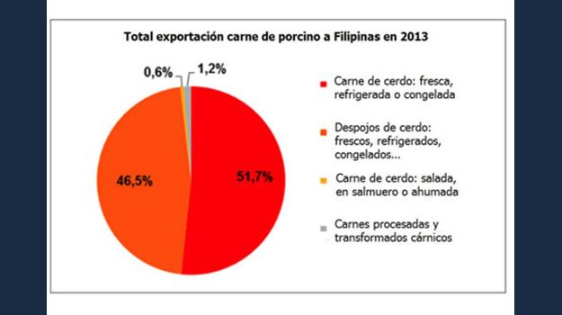 El mercado de Filipinas equivale a casi 2,7 millones de toneladas de carne, siendo uno de los más importantes del sudeste asiático por delante de Malasia o Vietnam. Las importaciones totales de carne de cerdo de Filipinas en 2013 ascendieron a 166.204 toneladas, creciendo un 40,06% con respecto al 2012 con un valor de las importaciones de 232,4 millones de dólares, creciendo un 107% con respecto al año 2012. Los principales países exportadores fueron Canadá (26%), EE UU (21%), Francia (14%), Alemania (13%) y España (8%). En 2014, la exportación de carne de cerdo española alcanzó casi los 18 millones de euros, 4 millones más que en 2013.