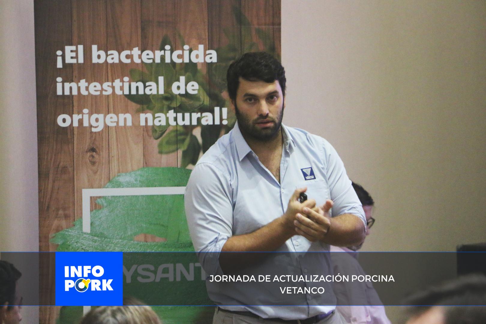 La idea del evento era presentarles las herramientas que Vetanco facilita, las mismas son multifactoriales, “tenemos que volver y revolver sobre la calidad de manejo, la calidad de medio ambiente, la calidad de trabajo, de bioseguridad interna. Tenemos que estar totalmente convencidos, si no lo estamos no vamos a poder gestionar la salud intestinal ni la salud de otros sistemas”, comentó Armocida. “Y después a esa salud intestinal hay que darle un medio adecuado para que se desarrolle y este sana, como son todos aquellos elementos de probioticos, prebioticos, ácidos, fitoterapeuticos, proteínas diferenciales en la nutrición, una gran variedad de herramientas hay pero hay que trabajarlos en conjunto con el manejo” agregó.