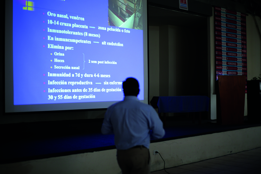 Álvaro Ruiz, Médico Veterinario, Docente de la Universidad de Concepción y PHD en enfermedades del cerdo, fue el encargado de presidir la disertación sobre Ericipela y Parvovirus y el impacto que tienen en la parte reproductiva en la producción intensiva, dos enfermedades que pueden traducirse en pérdidas importantes en la producción.