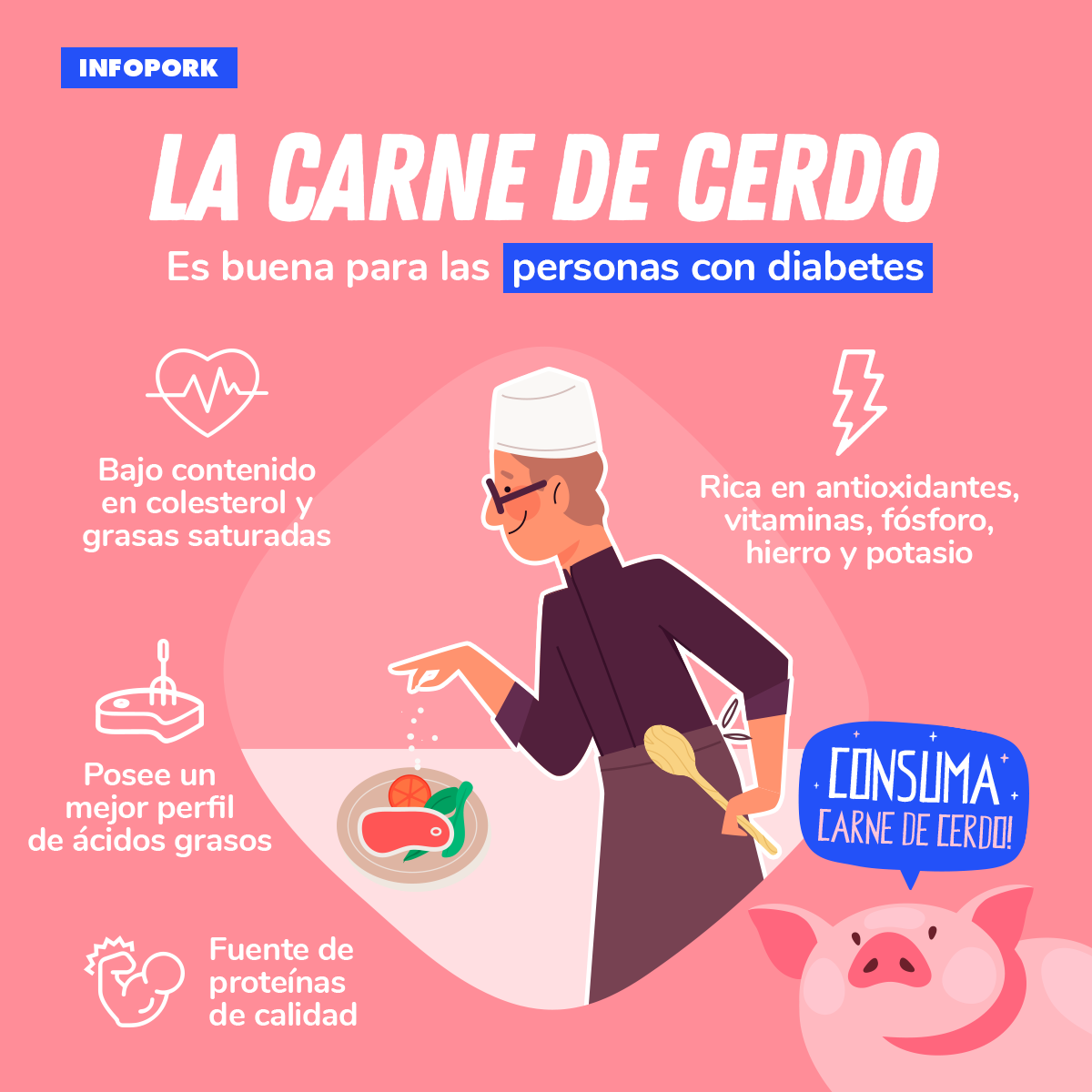 Infopor lanzó en el mes de enero una campaña para promoción del consumo de carne de cerdo producida en Argentina. La acción tiene por objetivo fomentar el consumo de carne fresca de origen nacional, la que posee altos niveles de sanidad y calidad.