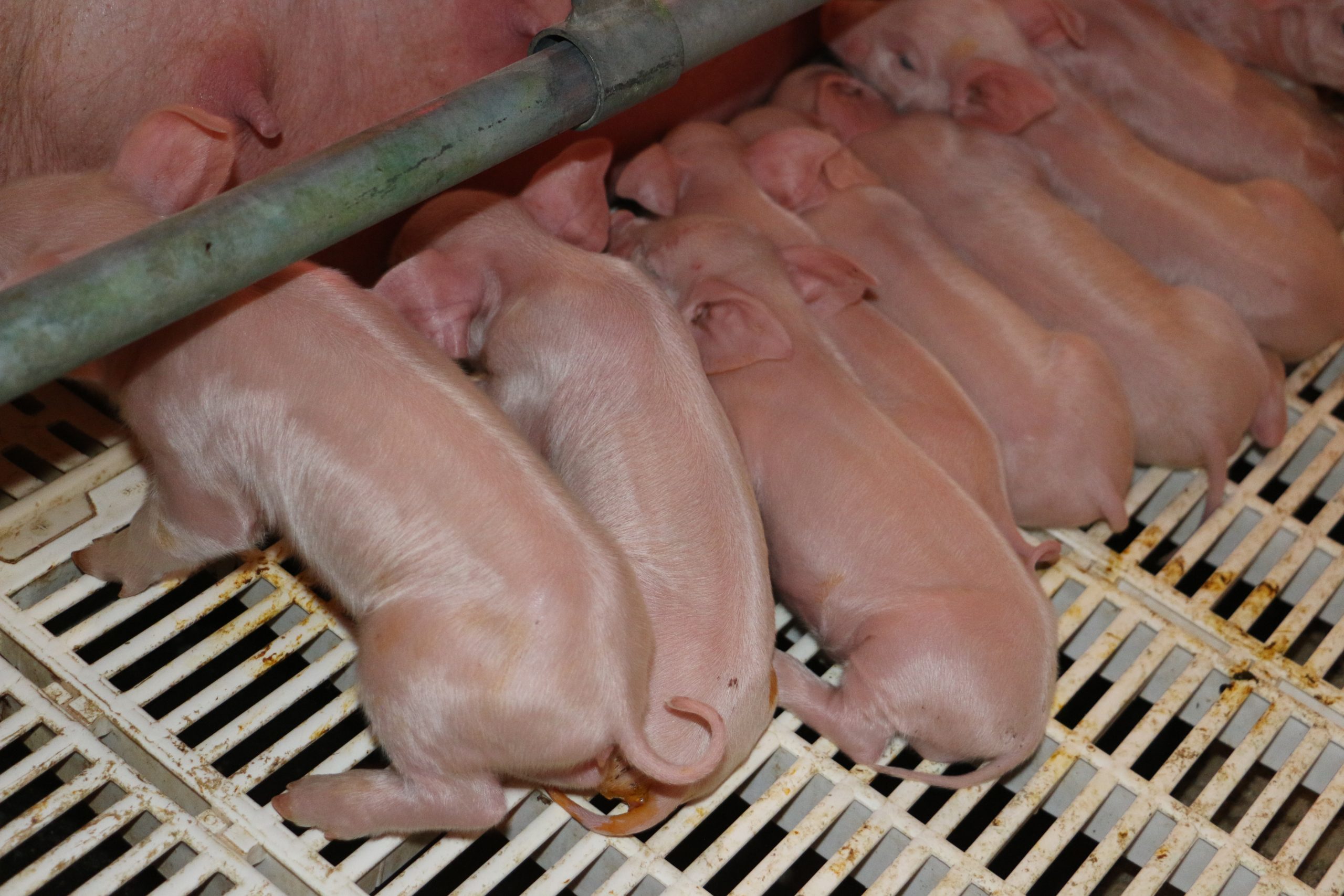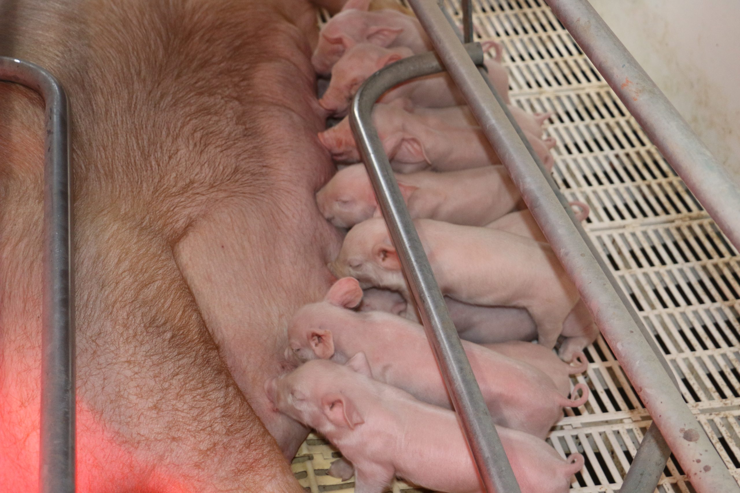 En maternidad hay 4 salas de 8 plazas cada una, calefaccionadas con manta térmica y lámparas infrarrojas. “En el plan implementado en este sector hay dietas específicas para hembras hiperprolíficas, utilizamos aditivos que estimulan la producción de leche para lograr camadas de mayor peso al destete”, comentó Santiago Lerotich. “Se hace un calostrado segregado entre lechones pensando en la calidad de la leche”, agregó Enzo Asencio.